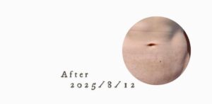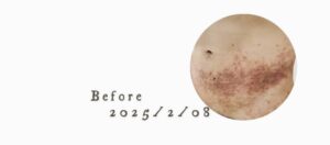 お写真の通り、お肌自体にうっすら色素沈着が残るのみ、時間とともにさらに消えていくと思います。